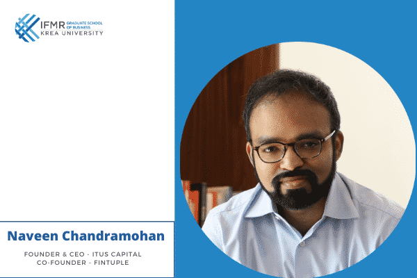 In an insightful interaction with the students of IFMR Graduate School of Business, Krea University, Naveen Chandramohan- CEO & Founder of Itus Capital & Co-founder of Fintuple Technologies, shared his perspectives on building one’s career and the innovative ways to go about it. Highlighting the key aspects of an effective leader, Mr Chandramohan shared a few stories from his life and stressed on living every day as though it were your last. A seasoned practitioner, he encouraged students to strive to do better and communicate well – relevant to both the professional and personal aspects of life.