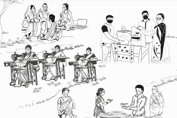 Women’s SHGs of NRLM emerged as pivotal actors in crisis management, leading from the front in – producing masks and protective gear, creating awareness about the pandemic, delivering essential goods and financial services to the most vulnerable and running community kitchens. Read IWWAGE’s insightful report on the community and institutional response to COVID-19 in India here.