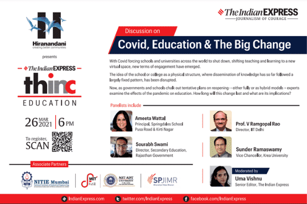 `IE Thinc’ is an initiative of The Indian Express which seeks out decision-makers, thought leaders, and policymakers to discuss specific issues that are a challenge to society. Vice-Chancellor Dr Sunder Ramaswamy will be a speaker in the panel on “Covid, Education and the Big Change”, along with other Indian educators.