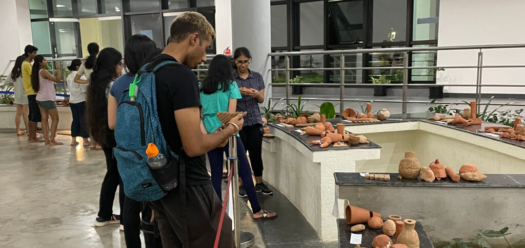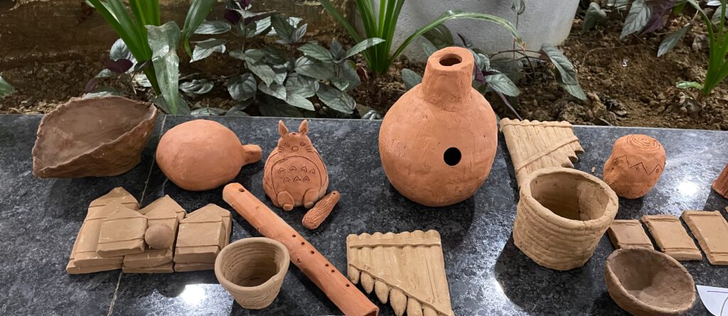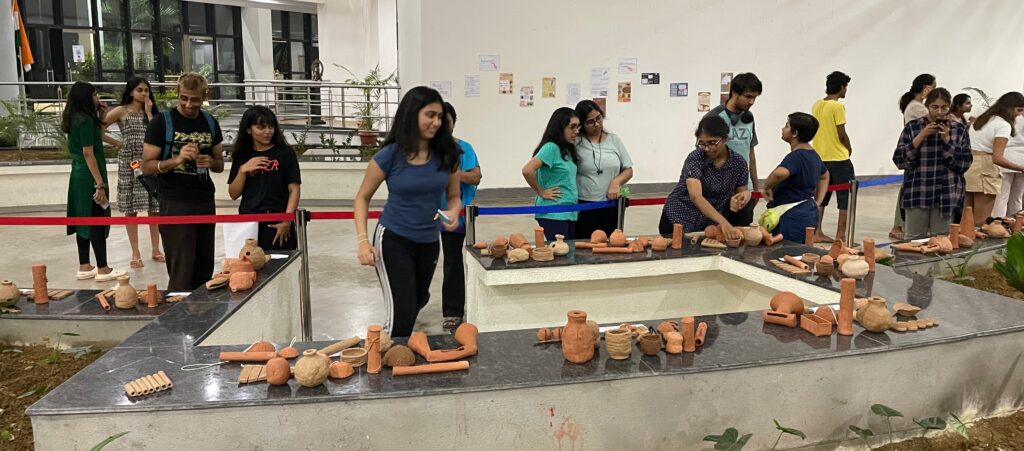On 12 – 14 May 2023, the students of the ARTS228 Music from Mud Pottery Course showcased their impressive collection of clay musical instruments at the Atrium of Krea University’s campus. The event drew a diverse crowd of faculty, students, and research fellows, all eager to witness the intricacies of the instruments. From rattles, pellet bells and ocarinas to udu drums, marimbas and panpipes, the display featured a range of aerophones and idiophones, each with its unique sound and design.