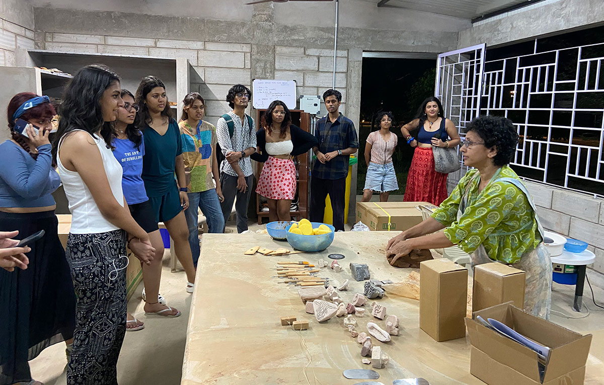 The Ceramic Studio on campus, which is part of the Global Arts discipline at SIAS is now home to six new state-of-the-art Shimpo wheels. Kaveri Bharath, Visiting faculty, SIAS inaugurated these on 9 August 2023 along with the student community on campus making some exquisite clayware