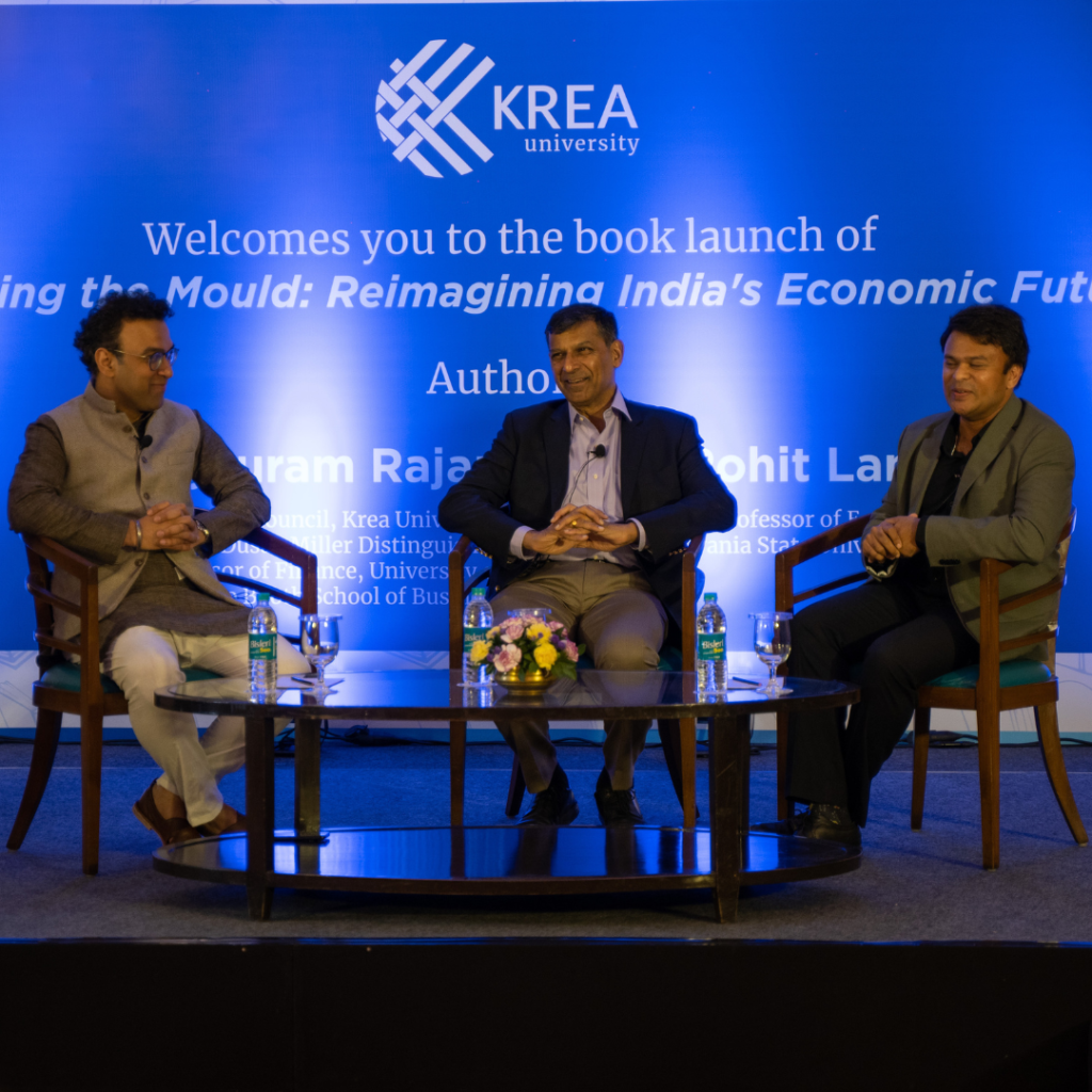 6 January, 2024, Chennai: Krea University hosted the book launch of Breaking the Mould: Reimagining India’s Economic Future by Dr Raghuram Rajan, Member, Governing Council, Krea University and Katherine Dusak Miller Distinguished Service Professor of Finance, University of Chicago Booth School of Business and Dr Rohit Lamba, Assistant Professor of Economics, Pennsylvania State University. The event was held at Taj Club House in Chennai.