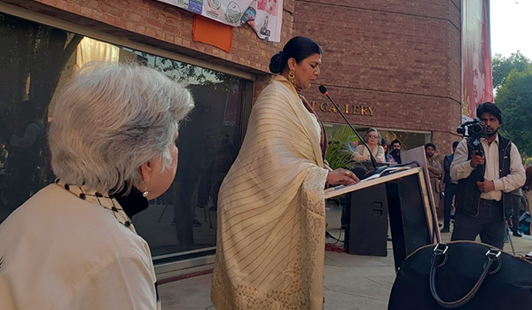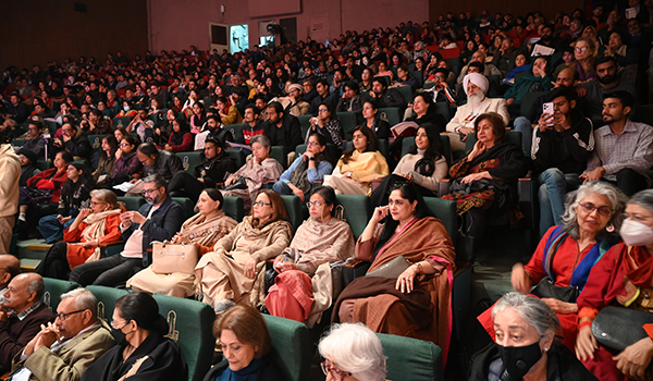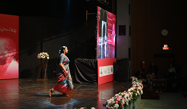 Dr Ganesh had the honour of delivering remarks at the festival’s opening ceremony, alongside Salima Hashmi, daughter of Faiz Saab, and other esteemed Pakistani dignitaries. Her performance took place in a packed hall at the Alhamra Arts Center, SADIR – Beyond Borders. Over the course of 90 minutes, she presented a diverse repertoire in Deccani, Urdu, Telugu, drawing from her extensive research in multicultural histories of performance. Through song, dance, and spoken word, she emphasised the role of the arts as a means of fostering dialogue – a crucial endeavour, particularly in light of the failure of politicians to bridge divides, which only serves to exacerbate partisan tensions and religious animosity. The evening concluded with a rendition of Hum Dekhenge, Faiz Saab’s poetry of hope, resilience and revolution, translated by the theatre director Mangai and sung by Anjana and Bindumalini.