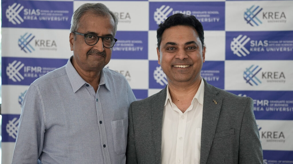 Carolynn Kurien, a second-year BBA student at IFMR GSB (Graduate School of Business) and Sneha Sucharita Palei, a third-year BA student (Economics major) at SIAS (School of Interwoven Arts and Sciences) welcomed Professor Subramanian. The event commenced with an address by Professor S Sivakumar, Dean, Research and Professor of Physics, SIAS, Krea University. Professor Subramanian presented copies of his book to distinguished guests, including Dr Suchika Chopra, Assistant Professor of Economics, SIAS, Krea University; Dr Rohan Gudibande, Assistant Professor, SIAS, Krea University; Dr Soumya Pal, Assistant Professor, IFMR GSB, Krea University; Satish Kamat, President, Sri City Operations and to the Krea University library.