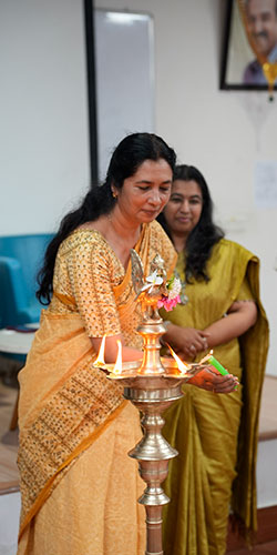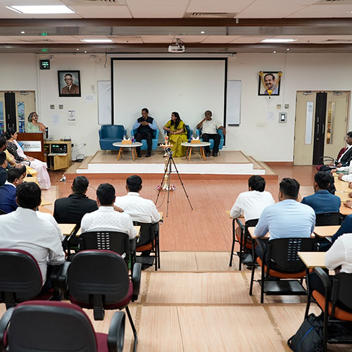 Dean Lakshmi Kumar delivered the welcome address, acknowledging the presence of the L&T dignitaries, Mr Ganesan and Ms Jayanthi. She expressed gratitude to Mr Raghavendran, who has been the Single Point of Contact (SPOC) for the programme for over a decade. Professor Lakshmi also highlighted the background of Krea University, emphasising the exceptional quality of education and the distinguished faculty at IFMR GSB.