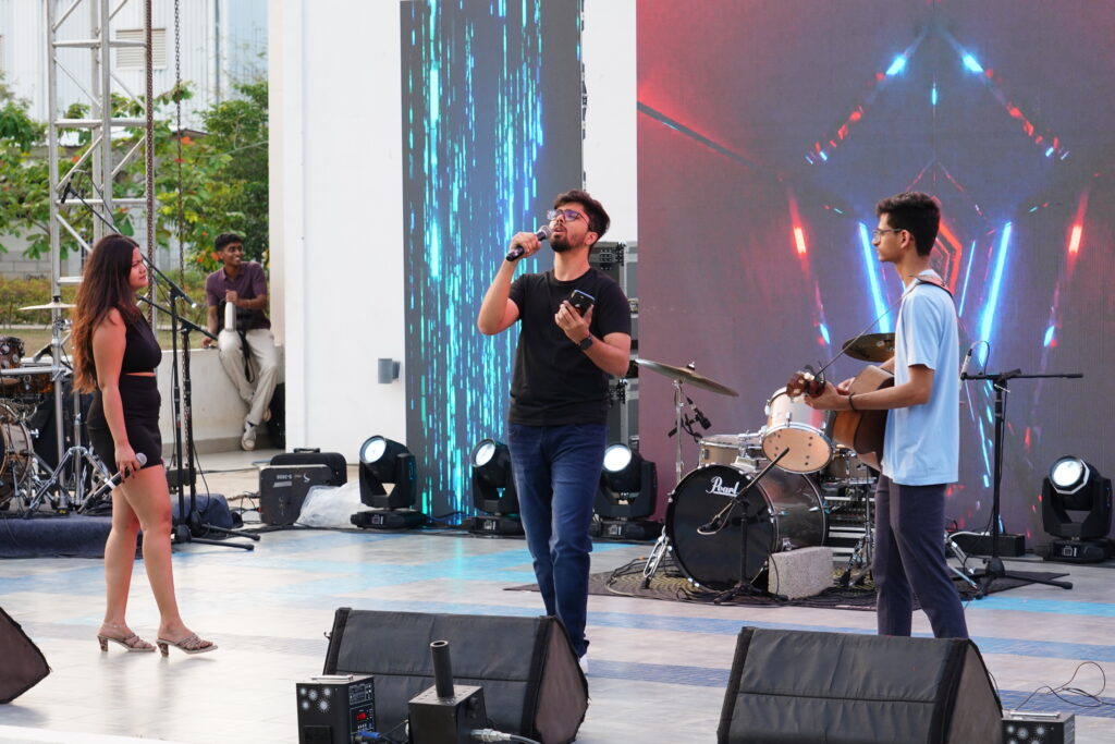 Yet, Abhyudaya has always been more than a competitive platform. As the sun set each evening, the campus transformed into a vibrant cultural hub. Live concerts and performances drew enthusiastic crowds, creating moments of shared joy and celebration. Music, lights, and an electric atmosphere ensured that the fest resonated far beyond auditoriums and competition halls. This year the fest witnessed two high-performing bands – Elfe choir, a renowned Chennai-based vocal group and Miraazz, a Delhi-based Sufi band. In addition to this, stalls, games, and informal gathering spaces added another layer to the experience, turning the festival into a lived, collective memory. Students, families, and visitors mingled across spaces, reinforcing the sense of togetherness that defines the Abhyudaya spirit. These quieter moments punctuated by laughter between events, spontaneous conversations, and late-evening reflections, often became the most memorable.