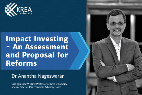 Dr Anantha Nageswaran – Distinguished Visiting Professor at Krea University and Member of PM Economic Advisory Board – co-authors a paper on “Impact Investing – An Assessment and Proposal for Reforms”, published by the Social Science Research Network (SSRN).The paper attempts to dispel some of the misconceptions associated with impact investing and provide a more …