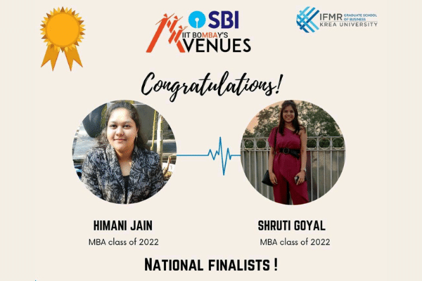 IFMR GSB students Himani Jain and Shruti Goyal were among the National Finalists at the recently held Economics case study event ‘Chanakya’, conducted at Avenues 2020 – the annual business festival of IIT Bombay. The faculty and the team at IFMR GSB are proud of their achievement!