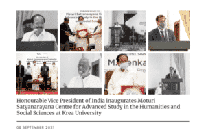 The Honourable Vice President of India Shri. M. Venkaiah Naidu, inaugurated the Moturi Satyanarayana Centre for Advanced Study in the Humanities and Social Sciences at Krea University on Wednesday, 08 September 2021. The official inauguration event was hosted at Raj Bhavan in Chennai.